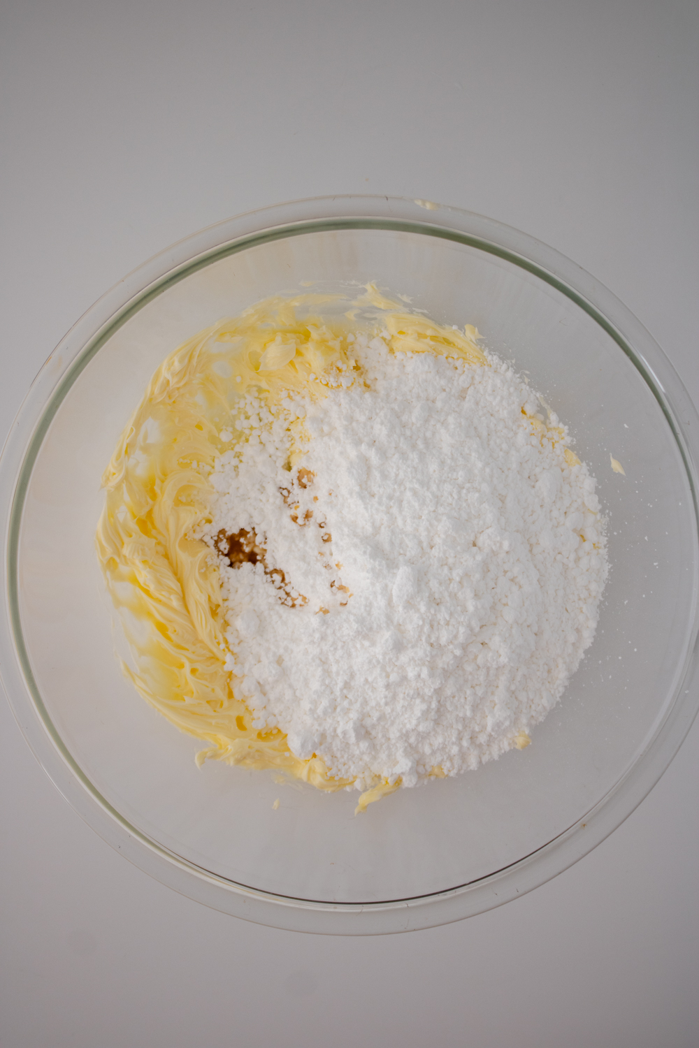 - Add powdered sugar, vanilla, and 1 tbsp liquid to a bowl. Mix until incorporated.