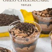 These no-bake trifles are rich and creamy, layered with crushed Oreos, a smooth Baileys-infused cheesecake filling, and fluffy chocolate whipped topping. They’re perfect for holidays, parties, or whenever you’re craving a treat with a twist!