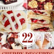 You certainly can’t have a list of cherry desserts without including a delicious cherry pie. It’s perfect for summer parties, gatherings, or when you’re craving a tart dessert after dinner.