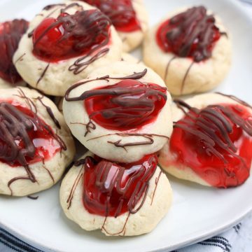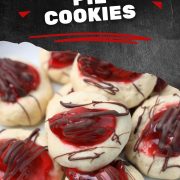 Our Cherry Pie Cookies feature a soft and buttery sugar cookie base, filled with a burst of heavenly cherry pie filling.