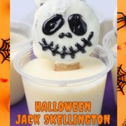 Place them in the fridge till the chocolate dries, then draw on Jack Skellington’s face before putting it back into the freezer until ready to serve!