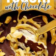 This peanut butter yogurt recipe is delicious with a chocolate shell! However, if you are in a rush, feel free to skip adding the chocolate shell! Top your yogurt with crunchy chocolate chips and any other optional toppings you like!