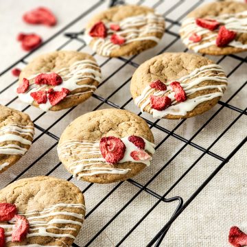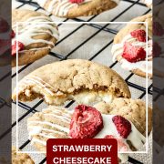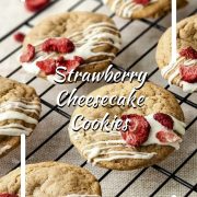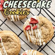 These strawberry cheesecake cookies are soft, creamy, and just the right amount of sweet. They bring all the flavor of a cheesecake slice in the form of a hand-held cookie.